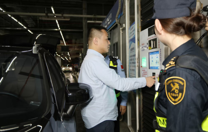 记者在通关现场看到,周先生的车刚驶入“一站式”专用验放通道,海关系统便迅速完成数据交互,屏幕亮起“请通行”字样。